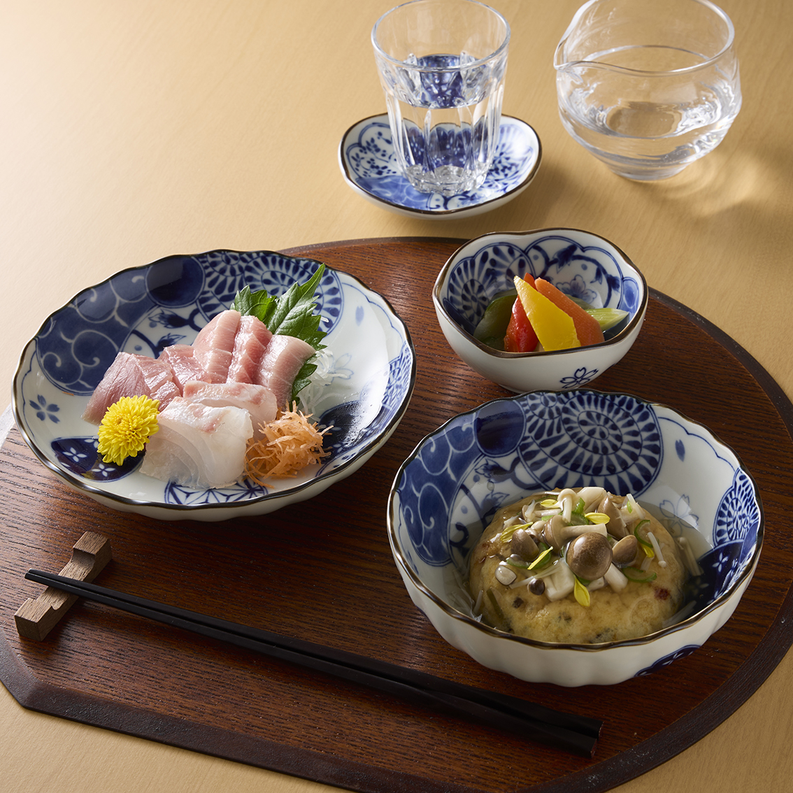 三峰陶苑では染付のうつわからモダン、モノトーン、花庵、その他商品まで 数多くのシリーズを取り揃えております。 柔軟な生産を可能とし、ロットのご相談も承っております。 詳しくは電話にてお問い合わせください。